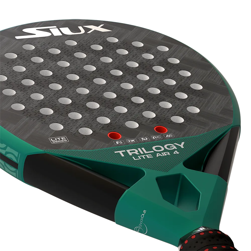 The Siux Trilogy Lite Air 4 is a precision-engineered padel racket designed for players who prioritize control, comfort, and maneuverability. Its round shape and handle balance ensure precise shots and effortless playability, making it ideal for intermediate to advanced players. With an emerald green edge and a carbon-effect finish, this racket stands out both in performance and style.